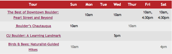 Friends, families and/or guests are in for a treat if you take one of Boulder Walking Tour’s many Boulder based experiences. Find a list of their favorite offerings here.