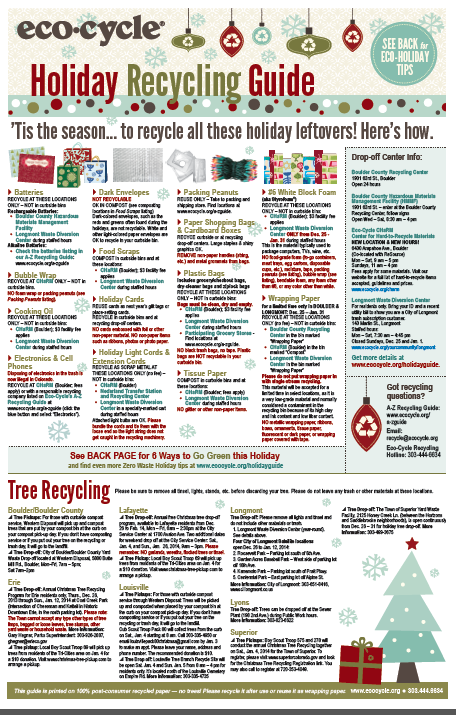 Wondering how to get rid of that Christmas tree? Have packing materials filling your garage? This handy guide gives you resources for recycling, disposing of your tree, and much more. Great to keep handy! The guide can be found here.