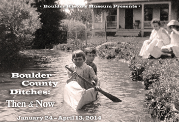 In 2009, during Boulder’s 150th Anniversary, a group of artists and historians created The Ditch Project to celebrate 150 years of Boulder’s irrigation history. They have combined historic images of Boulder’s ditches and contemporary photographs from the same locations. Thus evolved the exhibit, Boulder County Ditches: Then & Now. Hosted by the Boulder History Museum, the exhibit is open during normal museum hours through April 13, 2014. More information on The Ditch Project here.
